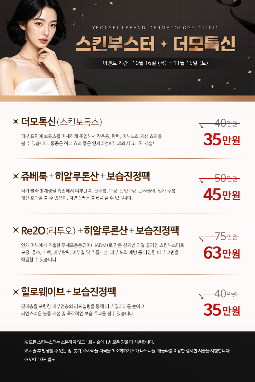 ◈스킨부스터, 더모톡신(스킨보톡스) EVENT◈ 기간: 2025년 10월 16일(목) ~ 2025년 11월 15일(토)